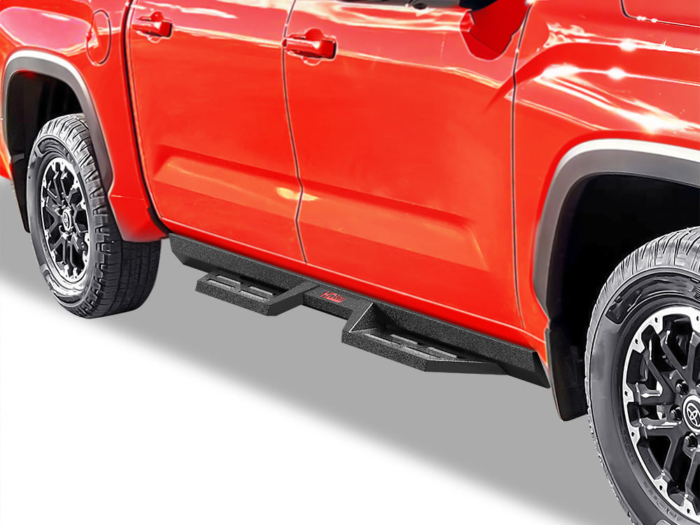 • Fits: Fit 2022-2025 Toyota Tundra CrewMax Drop Style Door to Door Carbon Steel Black Both Sides Nerf Bar DS 85