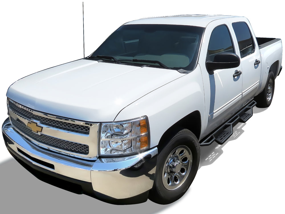 • Fits: Fit 2007-2018 Chevy Silverado/ GMC Sierra 1500 Crew Cab\ 2007-2019 Chevy Silverado/ GMC Sierra 2500 HD/3500 HD Crew Cab\ (Incl. Diesel Models With DEF Tanks|Not for 2007 Classic Model) Round Tube Drop Style Door to Door Carbon Steel Black Both Sides Nerf Bar 86
