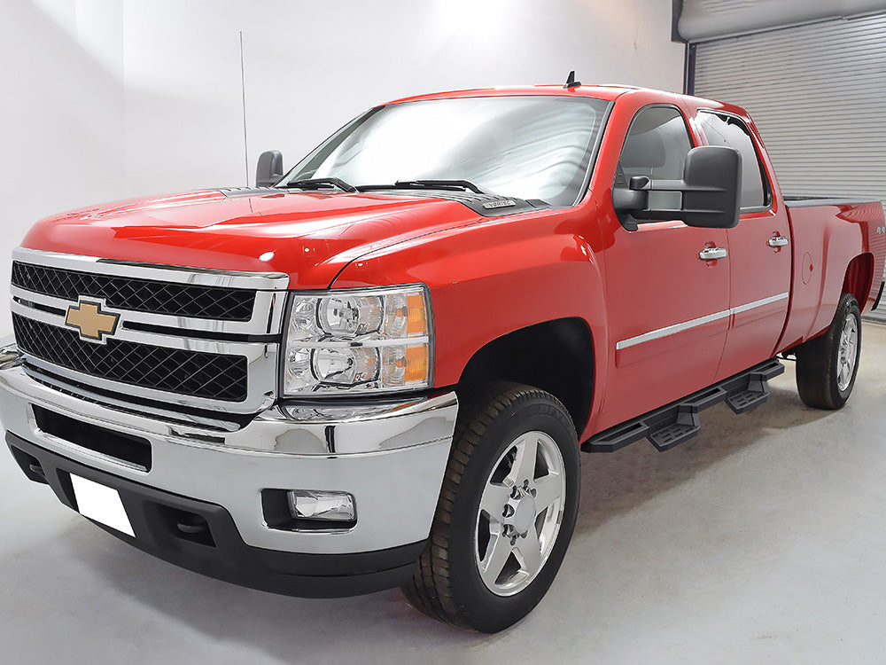 • Fits: Fit 2001-2007 Chevy/GMC Silverado/Sierra "Classic" 1500/1500HD/2500/2500HD/3500 Crew Cab Square Tube Drop Style Door to Door Stainless Steel with 6061 Aluminum Step Pad Black Both Sides Nerf Bar ST B: 83/ H: 87