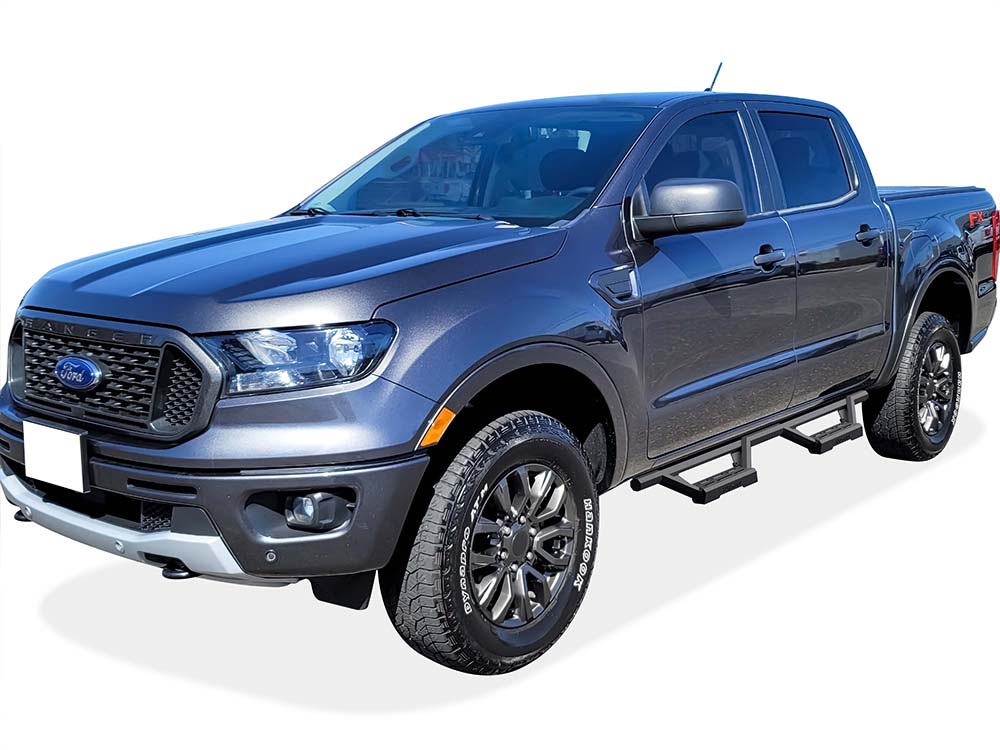 • Fits: Fit 2019-2023 Ford Ranger Super Crew Cab| 4-Door Octagon tube Drop Style Door to Door Stainless Steel with 6061 Aluminum Step Pad Black Both Sides Nerf Bar M3 79
