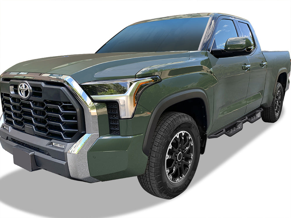 • Fits: Fit 2022-2025 Toyota Tundra Double Cab Round Tube Drop Style Door to Door Carbon Steel Black Both Sides Nerf Bar 76