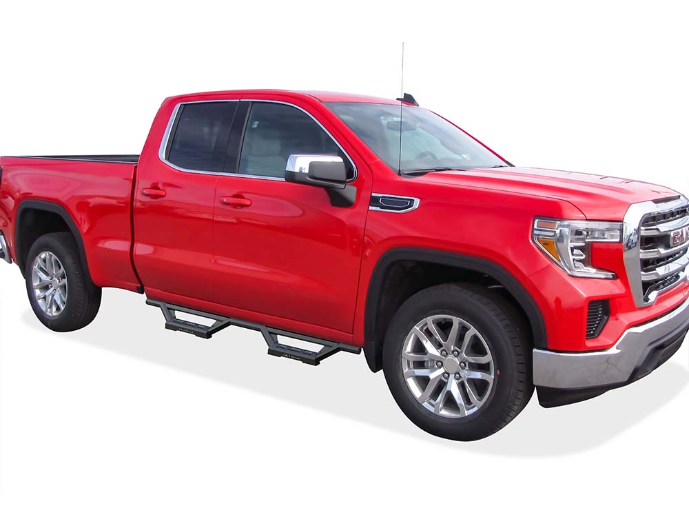 Fits: Fit 2019-2025 Chevy Silverado 1500 Extended Cab/ Double Cab\ 2019-2025 GMC Sierra 1500 Extended Cab/ Double Cab\ 2020-2025 Chevy Silverado 2500 HD/3500 HD Extended Cab/ Double Cab\ 2020-2025 GMC Sierra 2500 HD/3500 HD Extended Cab/ Double Cab\ Incl. Diesel models with DEF tanks\ Incl. 2022 Silverado 1500 LTD & Sierra 1500 Limited\Excl. 2019 Silverado 1500 LD & 2019 Sierra 1500 Limited Octagon tube Drop Style Door to Door Stainless Steel with 6061 Aluminum Step Pad Black Both Sides Nerf Bar M3 79