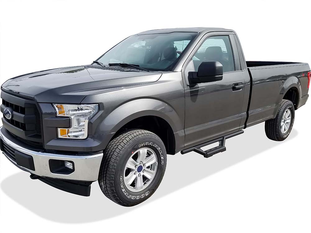 • Fits: Fit 2015-2025 Ford F-150 Regular Cab (Excl. 2022-2025 F-150 Lighting EV)\ 2017-2025 Ford F-250/F-350/F-450/F-550 Super Duty Regular Cab Octagon tube Drop Style Door to Door Stainless Steel with 6061 Aluminum Step Pad Black Both Sides Nerf Bar M3 55