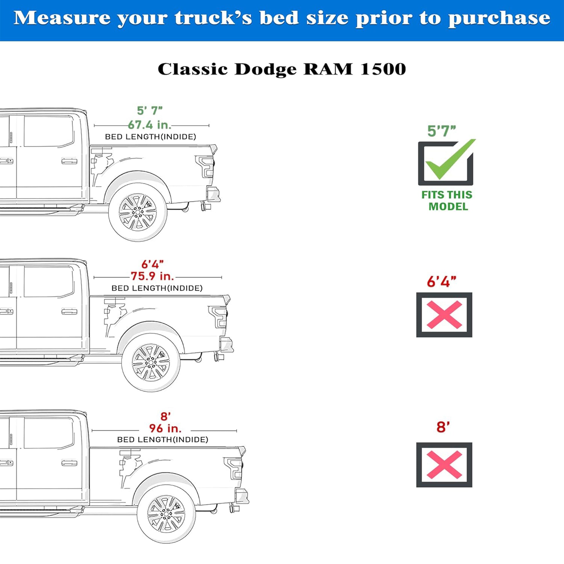 • Fits 2009 - 2025 Dodge Ram 1500 5' 7" Bed Without Ram Box (67.4")