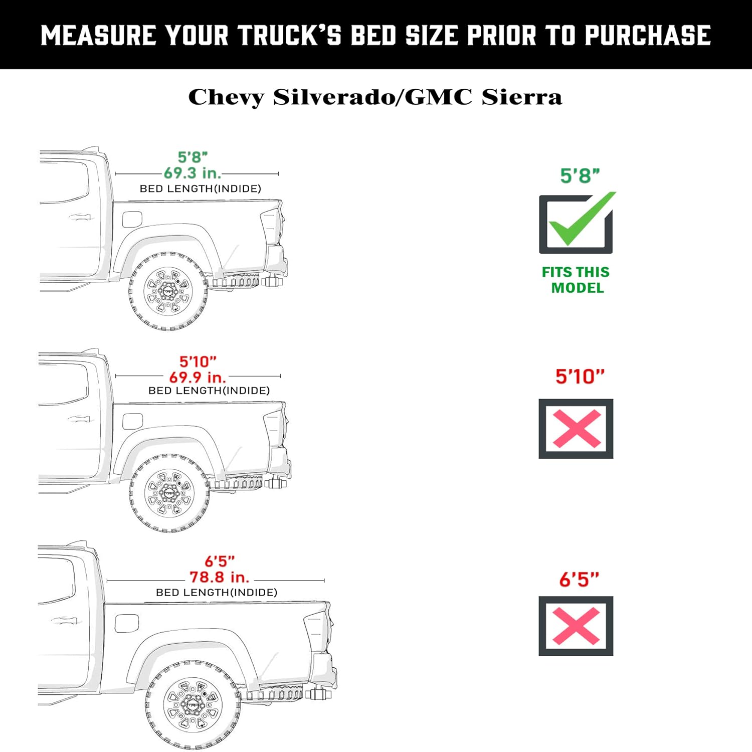 • Fits 2014 - 2018 Chevy Silverado/GMC Sierra 5'8" Bed (69.3")