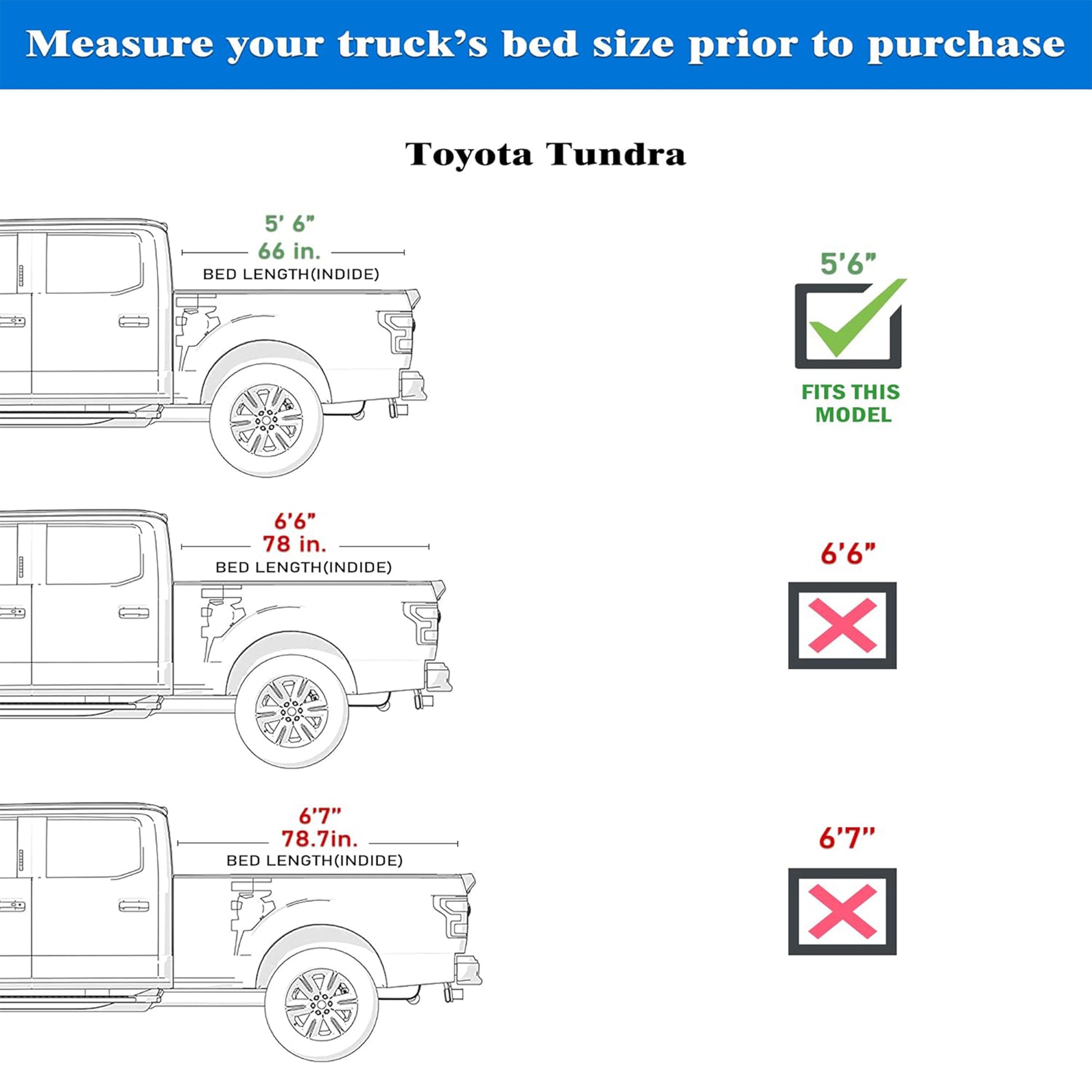 • Fits 2022 - 2025 Toyota Tundra 5‘6" Bed (66.7")